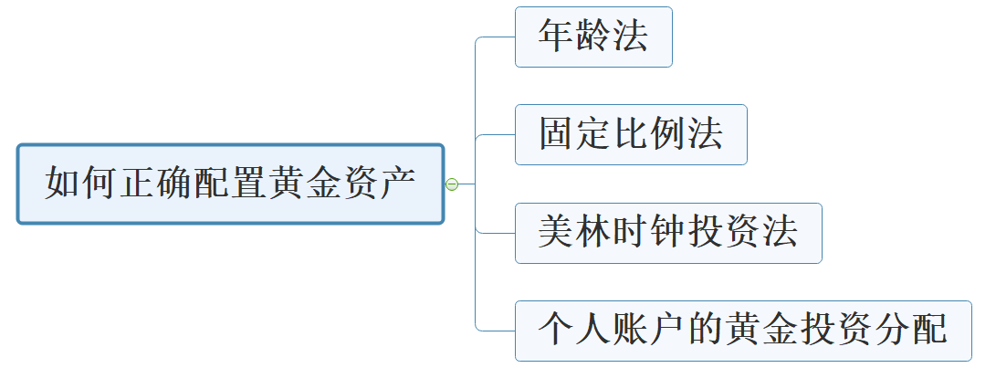 年龄法是一种动态的投资组合,其按交易者年龄的不同,而资产配置的比重不同,还有一种是随着年纪的增长,个人财富也随之增长。按照年龄法配置资产的话,其将(100-年龄)%的资金投入风险资产中,比如股票、基金和黄金;[(100-年龄)%*年龄]%的资金投入债券资产中;最后把剩余的资金投资黄金资产。