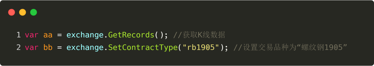例:exchange.SetContractType("rb1905"); //设置交易的品种为“螺纹钢1905合约”